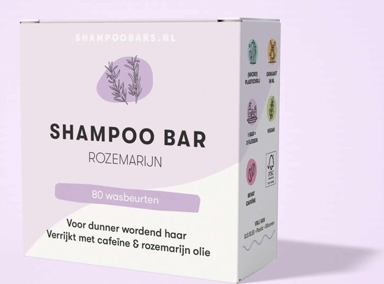 Heb jij dunner wordend haar of zelfs last van haaruitval? Dan is de ShampooBars Shampoo Bar Rozemarijn jouw hero! De shampoo tegen haaruitval is verrijkt met cafeïne en, je raadt het al, rozemarijnolie. Dankzij deze natuurlijke ingrediënten wordt sterk, gezond haar bevorderd en het haar versterkt tot in de kern. Je haar zal er gezonder, dikker en voller uitzien. Heb je last van schilfers, roos of een gevoelige hoofdhuid? Ook dan is deze Shampooo Bar fijn voor jou. De ontstekingsremmende eigenschappen van rozemarijn helpen de hoofdhuid gezond te houden. Een natuurlijke shampoo voor een gezonde hoofdhuid en haar zonder sulfaten, parabenen en siliconen!