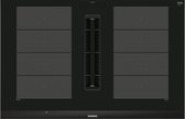Siemens inductiekookplaat - Siemens EX875LX57E - inductie kookplaat 80 cm - kookplaat met afzuiging - inbouw inductiekookplaat - zwarte inductiekookplaat - Siemens iQ700 - flexinduction kookplaat - kookplaat met geïntegreerde afzuiging - inductiekookplaat 4 zones - kookplaat 2 fasen