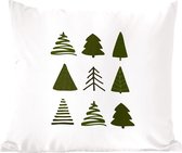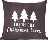 Sierkussens - Kussentjes Woonkamer - 45x45 cm - Quote "Fresh cut christmas trees" op een witte achtergrond - Kerstversiering - Kerstdecoratie voor binnen - Woonkamer
