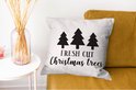 Sierkussen - Quote "Fresh cut christmas trees" op een witte achtergrond - Kussens woonkamer