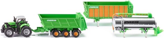 - Inhoud: 1 x Siku 1848 DEUTZ-FAHR tractor met Joskin aanhangerset, schaal 1:87, materiaal: metaal/kunststof, afmetingen: 18,5 x 3,4 x 4,2 cm, gewicht: 0,241 kg, kleur: groen, serie: SIKU FARMER
