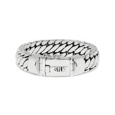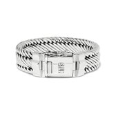 Deze stijlvolle zilveren armband van SILK bestaat uit fijne in elkaar gevlochten draden waardoor de armband zich zeer soepel om de pols vormt. Deze armband is ook verkrijgbaar in een smallere variant. Deze armband heeft een breedte van 1,5 cm.. De armband wordt in een mooie luxe geschenkverpakking verpakt.
