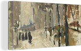 Geschreven bij: Acrylverf schilderij - Schilderij New York Skyline op canvas - 140x70 cm - woonkamer