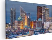 Acrylverf schilderij - Skyline Den Haag Blauw - 140 x 70 - handgeschilderd door Xander van Oosten