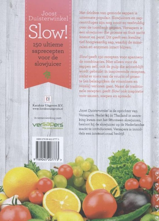 Slow! was het eerste Nederlandse receptenboek voor de slowjuicer. Het biedt 150 recepten voor de slowjuicer, verrassende recepten om op een eenvoudige manier diverse gezonde en bovenal lekkere bereidingen te maken met groente, fruit, kruiden en noten. Het boek geeft hiermee antwoord op de vraag hoe men de consumptie van deze belangrijke voedingsbronnen in het dagelijks leven kan verhogen.