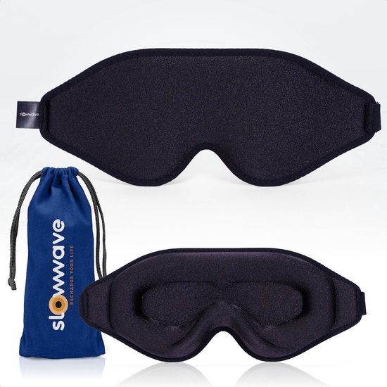 Slowwave Premium 3D Sleep Mask - Geen druk op de ogen dankzij innovatief 3D design - 100% verduisterend - Zacht en ademend traagschuim - Verstelbare band - Inclusief waszakje - Kleur: Midnight Black