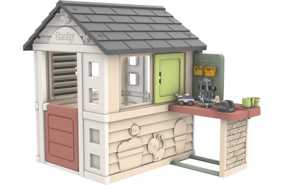 Smoby Life Speelhuis Nature met Werkplaats. Een echt huis voor kleine klusprofessionals