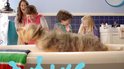 Het lijkt leuk alsof het wat water sproeit, maar ondertussen stroomt het water van de hond af in het badje en is er veel minder plezier aan.