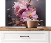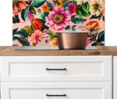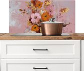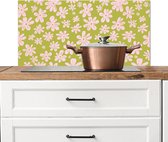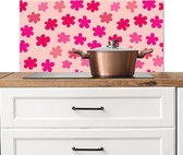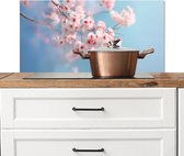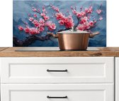 Spatscherm keuken 90x45 cm - Kookplaat achterwand Bloemen - Tak - Artistiek - Roze - Muurbeschermer - Spatwand fornuis - Hoogwaardig aluminium