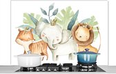 Spatscherm keuken 120x80 cm - Kookplaat achterwand Jungle - Jongens - Meiden - Baby - Olifant - Leeuw - Giraf - Muurbeschermer - Spatwand fornuis - Hoogwaardig aluminium
