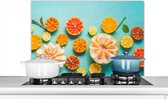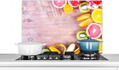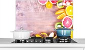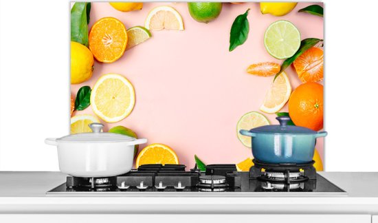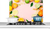 Spatscherm keuken 90x60 cm - Kookplaat achterwand Fruit - Citrus - Pastel - Muurbeschermer - Spatwand fornuis - Hoogwaardig aluminium