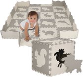 Speelmat Baby XXL – Puzzelmat – Opvouwbaar – Speelkleed - Speelmat Foam Tegels met hek – Dieren - Incl. Opbergtas