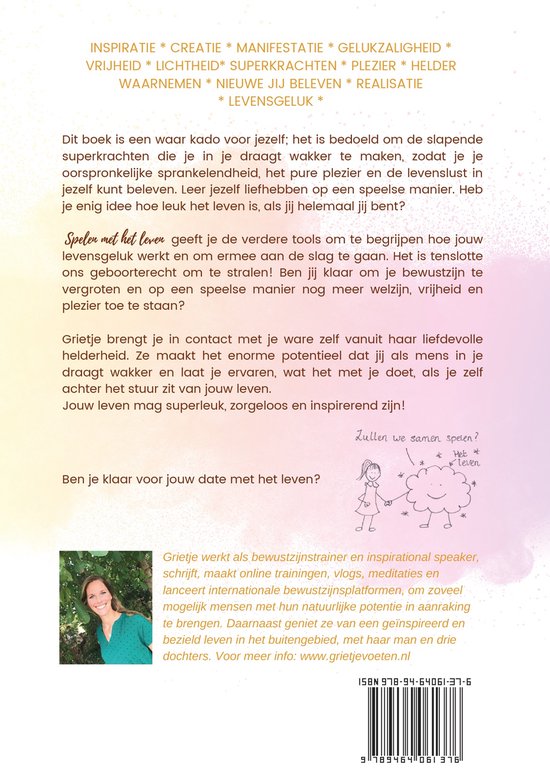 Grietje Voeten brengt je in "Spelen met je Leven" op lichtvoetige wijze in contact met je Ware Zelf vanuit haar liefdevolle, vaak verbluffend "eenvoudige" en aanstekelijke Helderheid. Ze maakt het grote potentieel dat jij als mens in je draagt wakker en laat je ervaren, wat het met je doet, als je zélf achter het stuur zit van jouw leven. Want: "Jouw leven mag superleuk, zorgeloos en inspirerend zijn!"