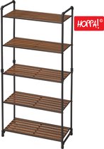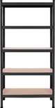 In de voorraadkast is een metalen plank de ideale oplossing voor het opbergen van voedsel en benodigdheden. De vijf ruime planken bieden voldoende ruimte voor al je producten, waardoor je alles gemakkelijk kunt organiseren en terugvinden. De duurzame MDF-planken kunnen zware lasten dragen, perfect voor potten en blikken. Het zwarte metalen frame is elegant en bestand tegen beschadigingen, wat langdurig gebruik garandeert.
