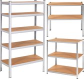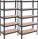 In de garage is een metalen plank onmisbaar. De vijf planken bieden voldoende ruimte voor al je gereedschap en accessoires, zodat je altijd alles bij de hand hebt. Het zwarte metalen frame met bruine planken geeft de plank een moderne uitstraling die perfect in de garage past. De stevige metalen constructie zorgt voor stabiliteit en duurzaamheid, cruciaal voor een werkplaats.