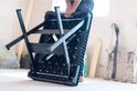 Ideaal voor een mobiele werkplek. 1 druk op de gele knop en de poten schieten eronder uit. Superstabiele werkbank met ideale afmetingen. Het materiaal is veel sterker dan het op de foto’s lijkt. Je kan er met gemak op staan en het geeft geen krimp! Oplossing gevonden.
