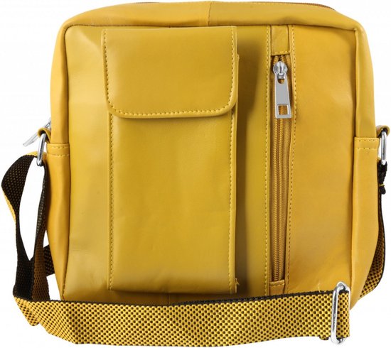 Steinmeister lederen schoudertas , 23 x 23 x 5 cm. geel
