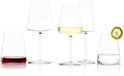 Deze Witte wijnglazen van de Power serie zijn geschikt voor zware witte wijnen zoals Pinot Grigio, Pinot Bianco, Trebbiano, Chardonnay, Gewürztraminer. Ook geschikt voor middelzware rode wijnen. POWER Een krachtig, puristisch en expressief ontwerpkenmerk de POWER glazen van Stölzle Lausitz. De buitenkanten van het trapeziumvormige glas zijn recht, de basis van het glas is plat. Deze vorm geeft de wijn een maximaal oppervlak om te ademen, vooral wanneer er een relatief kleine hoeveelheid in het glas wordt verwerkt. Dit komt de aroma- en smaakontwikkeling van de wijn ten goede. De POWER glazen hebben een getrokken staal die licht taps toeloopt van de bodemplaat naar de bovenkant, wat ze er niet alleen bijzonder elegant laat verschijnen, maar het glas ook een grote stabiliteit geeft. Onderscheidingen: POWER van Stölzle Lausitz werd bekroond met de German Design Award 2018 en de Industrie Form iF Design Award 2018 voor zijn uitstekende designkenmerken. Gekleurde glazen: Bij de glazen behuizing zijn de buitenkanten bedekt met organische kleur.