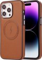 Geschreven bij: Sulada Soft case Microfiber leer en shockproof en lensbeschermer met magnetische ring voor de iPhone 15 Pro Orange