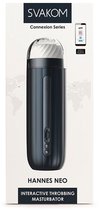 Sam Neo is een app-bestuurde masturbator met een scala aan functies. Beheer de masturbator op afstand via de SVAKOM-app of koppel deze met interactieve 2D-video's, zodat de masturbator elk beweging van de volwassen video's synchroniseert. Sam Neo beschikt over zowel een zuig- als een trilfunctie. De zuigfunctie genereert een vacuüm rondom de penis, wat zorgt voor een echte ervaring van een orale stimulatie. De vibratiefunctie biedt krachtige trillingen met 5 verschillende patronen. De zachte, silicone sleeve binnenin Sam Neo is zorgvuldig ontworpen met verschillende texturen voor een stevig gevoel en maximale stimulatie van de penis.