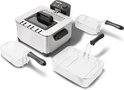 De Swiss Pro+ friteuse heeft een grote inhoud van 5 liter, waardoor hij perfect is voor het frituren van bijvoorbeeld friet en snacks. Dankzij de koelzone blijft de olie langer vers. Een extra voordeel zijn de 3 frituurmanden. Kies ervoor om een complete maaltijd van snacks en frietjes tegelijk te bakken of een heleboel snacks of frietjes in één keer te bakken. Ideaal wanneer je een feestje geeft!
