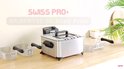 Swiss Pro+ friteuse, uitneembare binnenpan, 1 grote en 2 kleine frituurmanden met afneembaar handvat, gebruiksaanwijzing