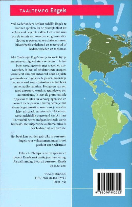 Met Taaltempo Engels kun je in korte tijd je gespreksvaardigheid sterk verbeteren. In het boek wordt gewerkt met vragen en antwoorden. Je leest of beluistert een vraag en formuleert dan een antwoord door de juiste grammaticale regels toe te passen, waarna je het antwoord kunt controleren in het boek en het audiomateriaal. Het geven van een goed antwoord wordt zo gaandeweg een automatisme. Je leert de grammaticale rijtjes los te laten en vervoegingen snel en correct toe te passen. Daarbij oefen je niet alleen de grammatica, maar ook je vocabulaire, uitspraak en intonatie. Het niveau wordt geleidelijk opgevoerd van A1 naar B2, waarbij het voorafgaande steeds wordt herhaald. Het uitgebreide audiomateriaal is beschikbaar via een website.
