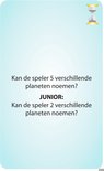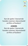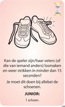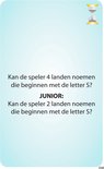 Wat dit spel extra bijzonder maakt, is dat elke opdracht ook een junior variant heeft. Daardoor kunnen kinderen net zo goed meedoen als volwassenen. Een voorbeeld: op een kaart staat de opdracht “Bedenk 6 woorden met het woord ‘inter’ erin”. Voor kinderen staat er een aangepaste junioropdracht onder, zoals “Bedenk 3 woorden met het woord ‘inter’ erin”. Zo blijft het spel voor iedereen uitdagend én haalbaar, ongeacht de leeftijd.