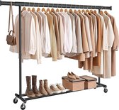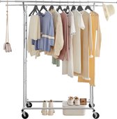 Stevige kledingrek met veel opbergruimte om al je kleding aan op te hangen en zelfs je schoenen en accessoires op te bergen. Het rek is in hoogte en breedte verstelbaar en heeft een draagkracht van maar liefst 100 kg. Ideaal voor het ophangen van jassen, jurken, overhemden en andere kleding items. Voorkom kreukels en vouwen in je kleding door ze een plaats te geven aan dit kledingrek. Het rek beschikt tevens over een verwijderbare opbergplank voor het opbergen van schoenen of dozen.