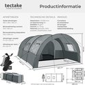 tectake® - Tunneltent voor 6 personen - Familietent op stahoogte - Voortent - Campingtent grote slaapcabine met grondzeil - 4 ramen, waterafstotend, 480 x 350 x 195 cm, donkergrijs/lichtgrijs
