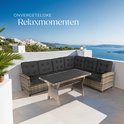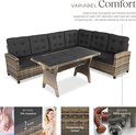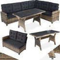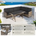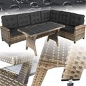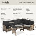 tectake® Wicker zitgroep tuinbank - Loungeset met bank en eettafel - Hoekbank - Buitenlounge - Zithoek - Weerbestendig - Tuin, balkon, wintertuin, terras - Zithoogte 41 cm - Beige