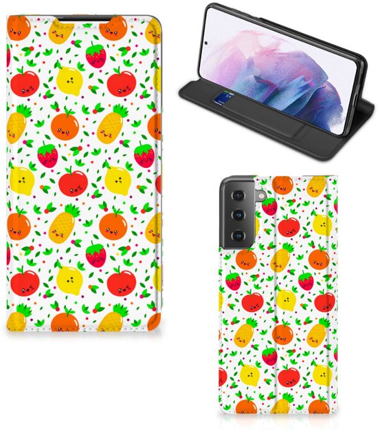 Een fris, fruitig en vrolijk hoesje, deze case met afbeeldingen van aardbeien, ananassen, appels, sinaasappels en citroenen. Minstens twee stuks fruit per dag wordt aanbevolen als dagelijkse hoeveelheid voor de mens. Dit verkleint de kans op allerlei ziekten. Dus met het aantal stukken fruit op de Samsung Galaxy S21 Plus Flip Style Cover zou je wel een maandje zoet moeten zijn. Met het hoesje zelf kun je je hele leven doen, dit is namelijk niet stuk te krijgen. Dit komt door het sterke en flexibele materiaal waarvan het gemaakt is. De vrolijk stemmende case het desing Fruits maakt jouw telefoon dus zeer duurzaam. Zorg ervoor dat jouw smartphone gezond blijft en kies voor dit hoesje met frivool fruit. Een stand case met fruit beschermt jouw telefoon aan alle kanten en beschikt over een 1 opbergvakje en een speciale standaard. Het hoesje met fruit wordt afgesloten met een magneet aan de binnenzijde. De houder aan de binnenzijde is van TPU.