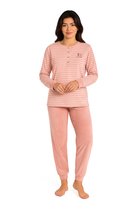 Tenderness Winter Kwaliteit Dames Pyjama gemaakt van micro fleece in 50% gekamde katoen en 50% polyester. Deze pyjama is van binnen geruwd, wat zorgt voor een uitzonderlijk zachte en comfortabele feel. Een origineel Tenderness ontwerp, perfect voor koelere nachten en gezellige avonden thuis.