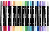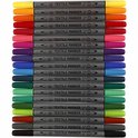 Goed werkende stiften, fijn dat er twee soorten stiften aan zitten een dikke en een dunne. De kleuren zijn wel iets anders als je ze gebruikt.