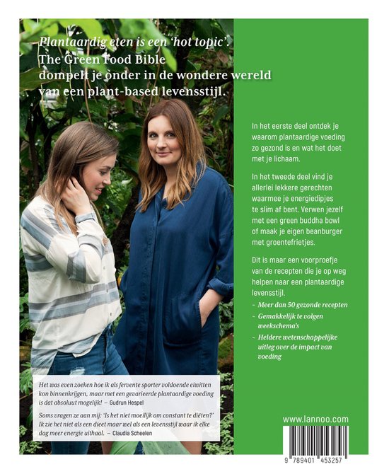 In The Green Food Bible vertellen Laura en Mylena je alles over plantaardig eten. Waar haal je je calcium vandaan als je geen zuivel eet? Hoe zorg je ervoor dat je genoeg eiwitten eet als je vlees en vis van je bord schrapt? Hoe reageert je lichaam op verschillende soorten koolhydraten?