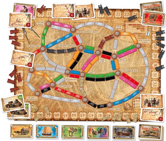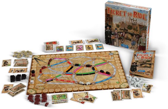 Ticket to Ride Amsterdam is een snelle en compacte versie van het populaire bordspel Ticket to Ride. In deze editie reis je terug naar de 17e eeuw, ook wel bekend als de Gouden Eeuw, waarin Amsterdam het bruisende hart was van de wereldhandel. Bouw jouw handelsnetwerk door strategisch routes te claimen langs bekende locaties als de Dam, de Waag en de Oude Kerk. Verzamel waardevolle handelswaren en voltooi contracten om de meeste punten te scoren. Dankzij de korte speelduur is dit bordspel ideaal voor tussendoor en een van de meest populaire bordspellen voor gezinnen.