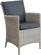 Eigenschappen Timber verstelbare tuinstoelHet onderstel van de Timber verstelbare tuinstoel is gemaakt van aluminium. Dit materiaal is licht van gewicht, stevig en kan niet verroesten. Om dit frame is het kunststof vlechtwerk (wicker) gevlochten. Het vlechtwerk is uitgevoerd in de kleur organic grey en heeft weinig onderhoud nodig. Schoonmaken met een sopje van bijvoorbeeld groene zeep volstaat. Na het schoonmaken de stoel royaal afspoelen met water. Let op dat je hiervoor geen hogedrukreiniger gebruikt. Voor extra comfort wordt de wicker verstelbare tuinstoel geleverd met een comfortabel zit- en rugkussen. De kussens zijn niet waterbestendig. Daarom adviseren wij om de kussens na gebruik op een droge en geventileerde plek op te bergen.
