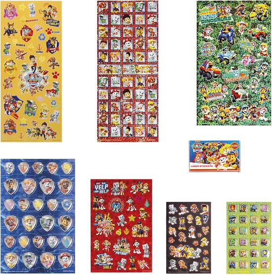 7 stickervellen in verschillende materialen en met alle PAW Patrol pups