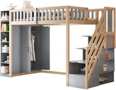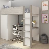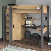 Hoogslaper Beau met grafietgrijze accenten, inclusief bureau en kledingkast. Afgewerkt in melamine.