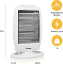 Stel eenvoudig de juiste temperatuur in met de twee warmtestanden van 400, 800 en 1200 Watt. Daarnaast heeft de kachel ook een oscillatie functie, hierdoor wordt de warmte gelijkmatig verspreid door de kamer. Met het geïntegreerde handvat kan je de kachel eenvoudig verplaatsen of opbergen. Mocht je de kachel per ongeluk omstoten dan zorgt de omvalbeveiliging ervoor dat de kachel ook meteen uit gaat.
