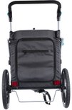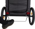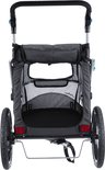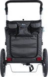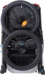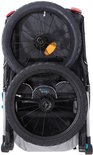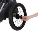 De fietskar is makkelijk in te klappen en compact op te bergen en komt met koppeling. En nog beter? Je kunt de fietskar heel gemakkelijk ombouwen tot een buggy met het los verkrijgbare voorwiel!