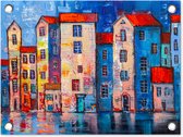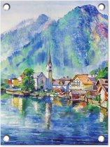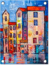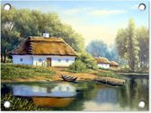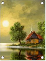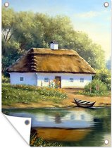 Tuin decoratie Schilderij - Olieverf - Huis - Natuur - Water - 40x30 cm - Tuindoek - Buitenposter