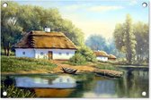 Tuinschilderij - Schilderij - Olieverf - Huis - Natuur - Water - Tuinposters buiten