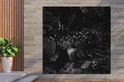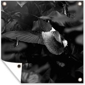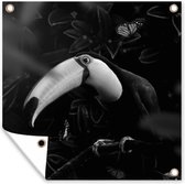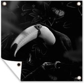 Tuinschilderij - Portret van een kaketoe omringd door vlinders - zwart wit - Tuinposters buiten