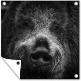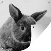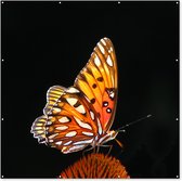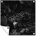 Tuin poster Portret van een kaketoe omringd door vlinders - zwart wit - 200x200 cm - Tuindoek - Buitenposter