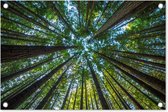 Tuindecoratie Bos - Bomen - Lucht - 60x40 cm - Tuinposter - Tuindoek - Buitenposter