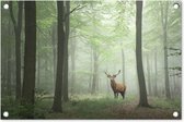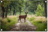 Tuindecoratie Bos - Hert - Bomen - 60x40 cm - Tuinposter - Tuindoek - Buitenposter
