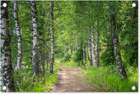 Tuindecoratie Bos - Bomen - Berk - 60x40 cm - Tuinposter - Tuindoek - Buitenposter