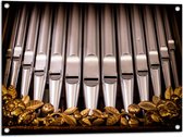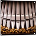 Tuinposter – Close-up van Pijpen van Draaiorgel - 80x80 cm Foto op Tuinposter (wanddecoratie voor buiten en binnen)