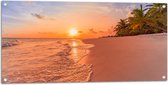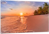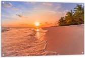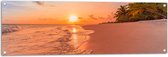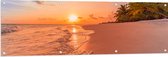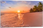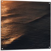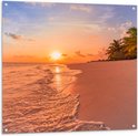 Tuinposter – Kalme Golven aanstromend op Strand bij Zonsondergang - 100x100 cm Foto op Tuinposter (wanddecoratie voor buiten en binnen)